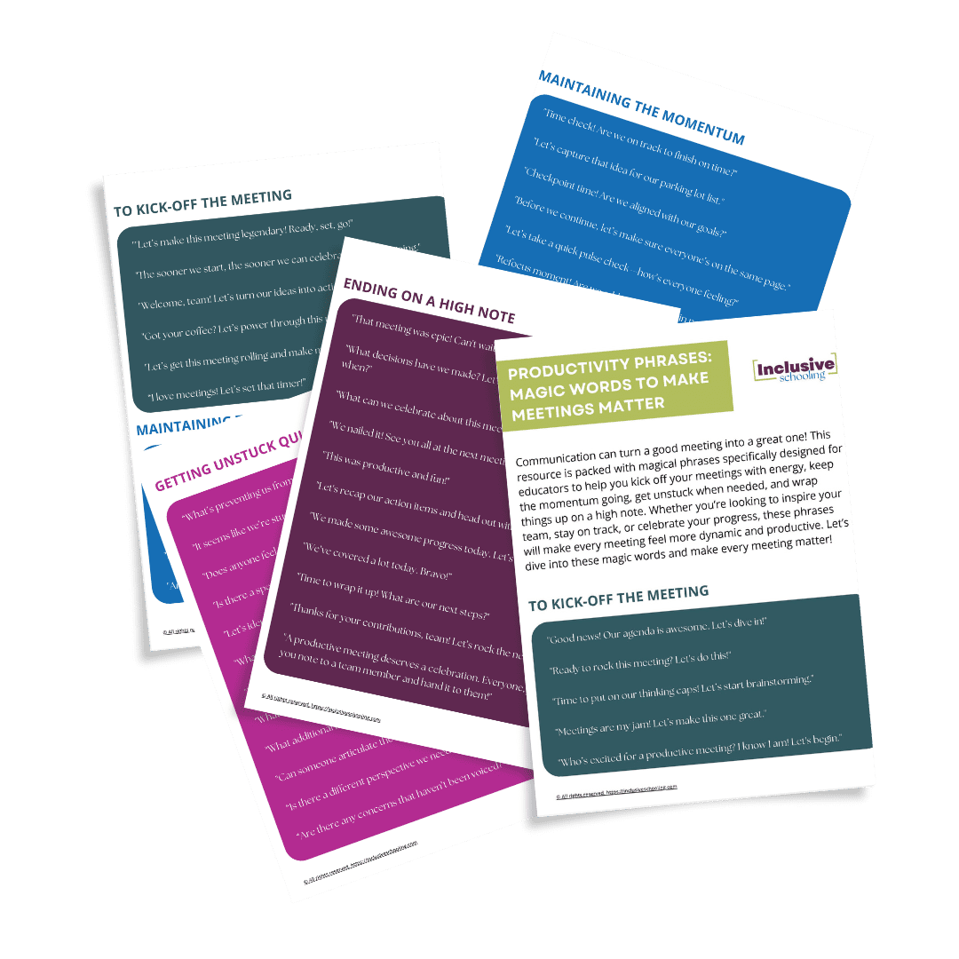 Make every meeting more engaging and efficient with these practical, uplifting phrases. Designed for educators and school leaders, this guide includes sentence starters to kick off meetings with energy, refocus when things get stuck, and end on a high note—so your meetings stay on track and inspire action.